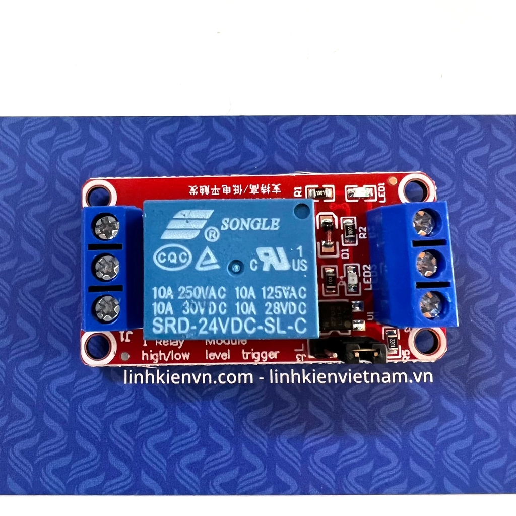 Module relay 1 kênh 24V 10A chọn mức kích hoạt high/low -