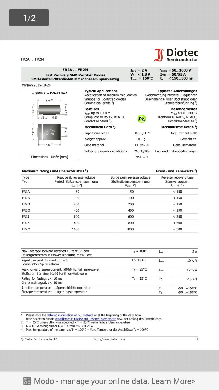 Diode FR2M 2A 1000V