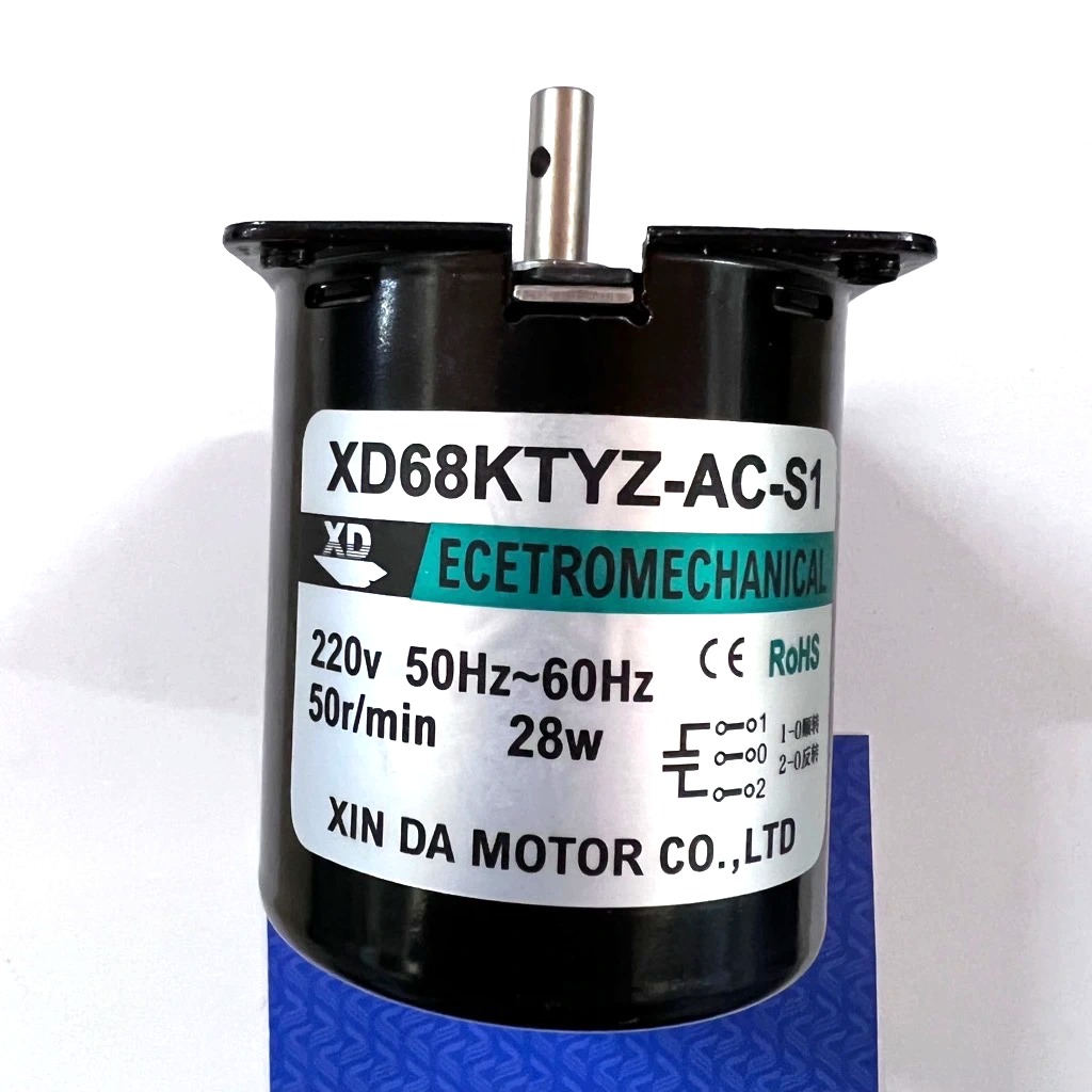Động cơ AC bánh răng đồng bộ 60KTYZ 220V – 14W CW/CCW cho bàn xoay và các sản phẩm cần tốc độ quay cực thấp với số vòng tua: 50v/p. Sử dụng điện áp AC, kích thước động cơ nhỏ, số vòng quay nhỏ, momen xoắn nhỏ nên được ứng dụng rất đa năng trong các loại máy móc chế biến thực phẩm, dân dụng.