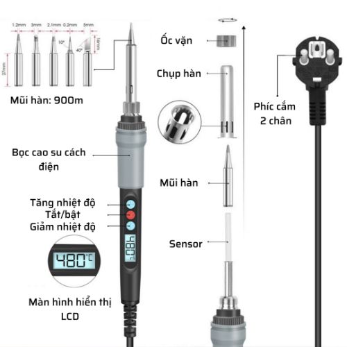 - Mũi hàn: sử dụng mũi 900M ( K I B SK ..)
